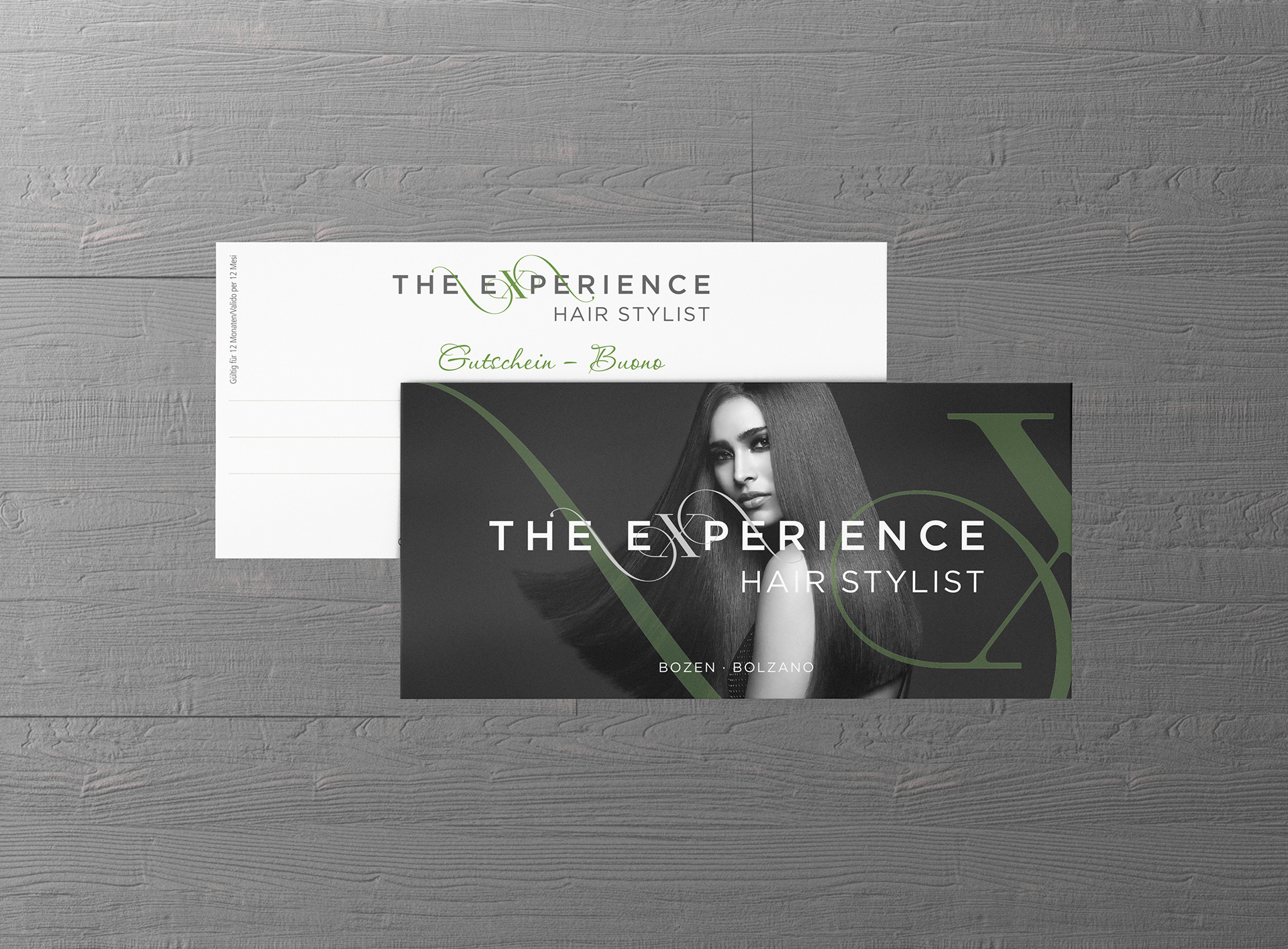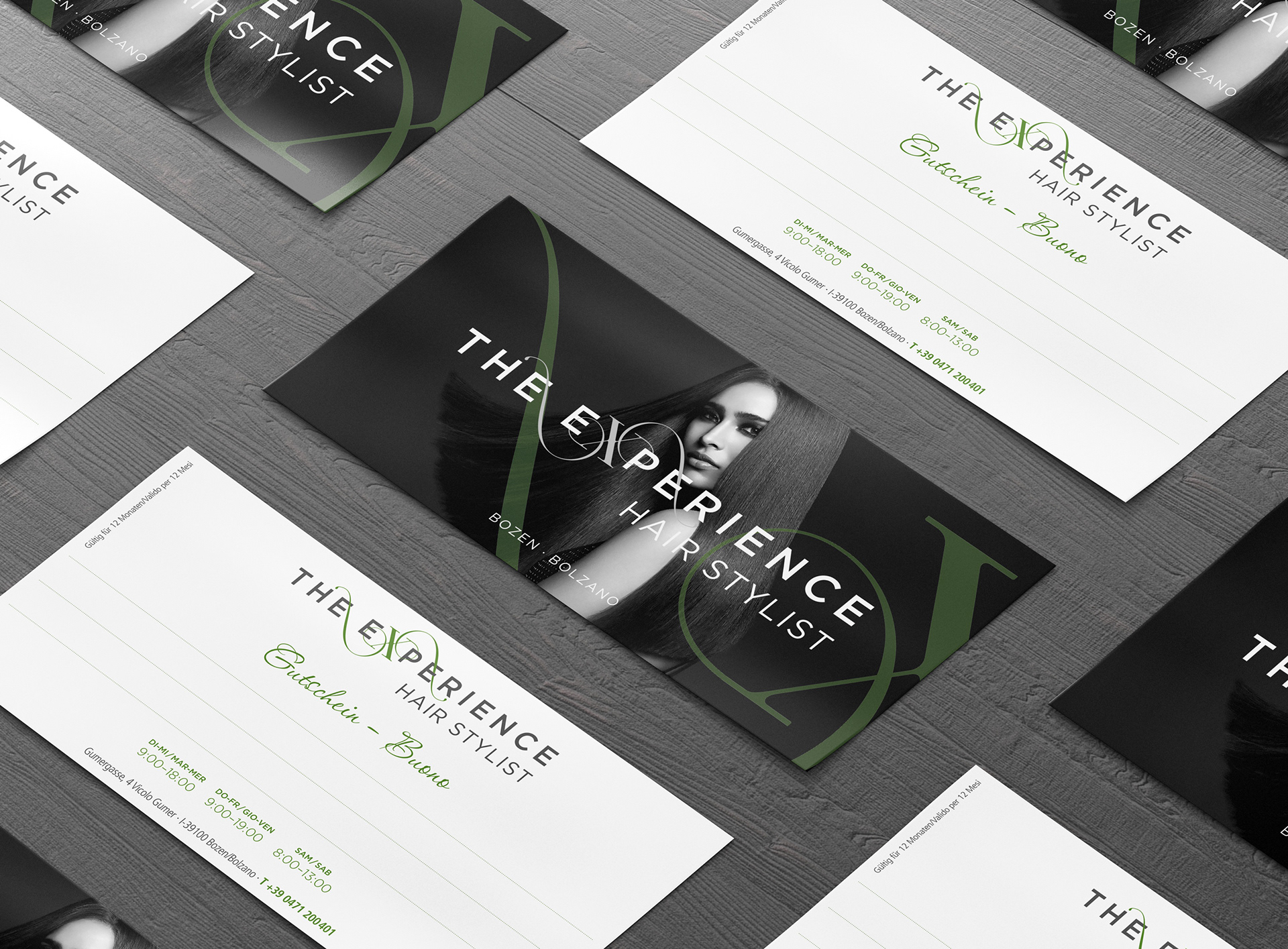 Redesign Logo e immagine per il salone di parrucchiere The Experience, in centro storico a Bolzano.