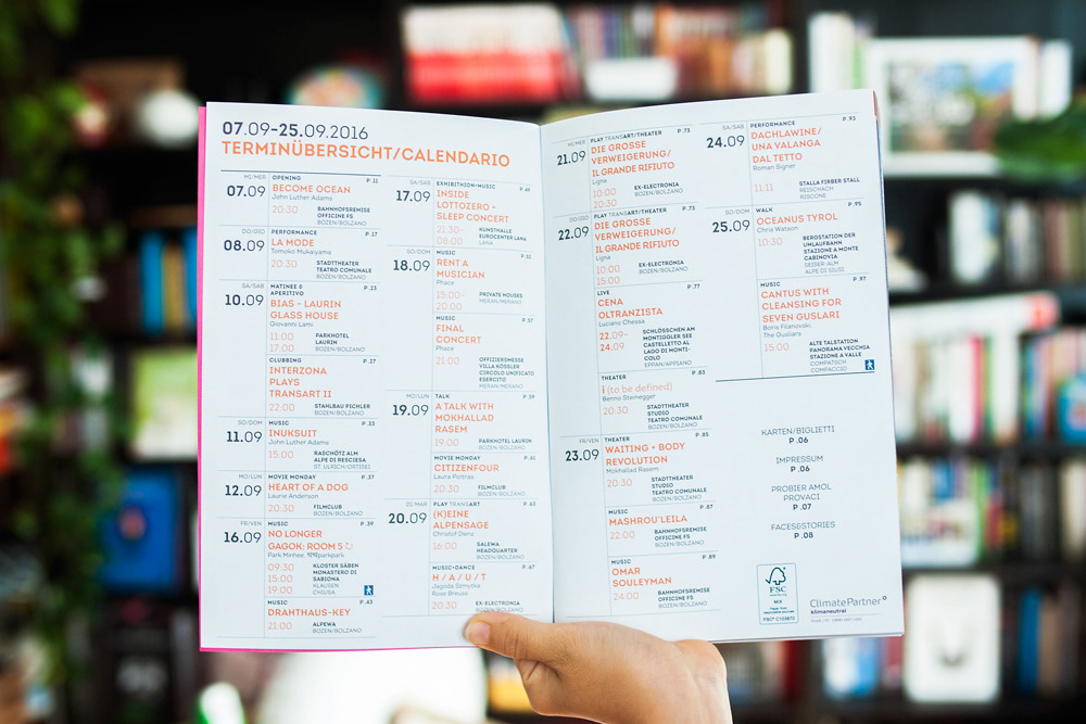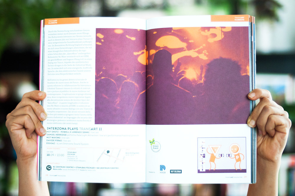 Transart is the most important contemporary culture festivals in the South Tyrol. In year 2016, in collaboration with Hannes Pasqualini (papernoise.net) we redesigned the logo and visual identity, created the new key visual graphic for the 2016 edition and produced all the printed materials needed for the festival.